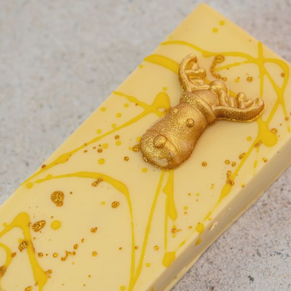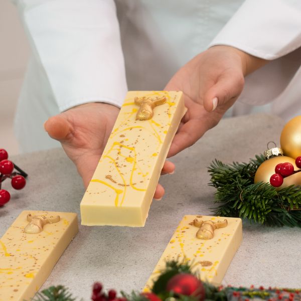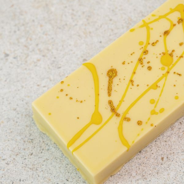 Praliné d’ametlla amb un toc de llimona i canyella amb cruixent de neules, trufa de xocolata blanca amb canyella i llimona.