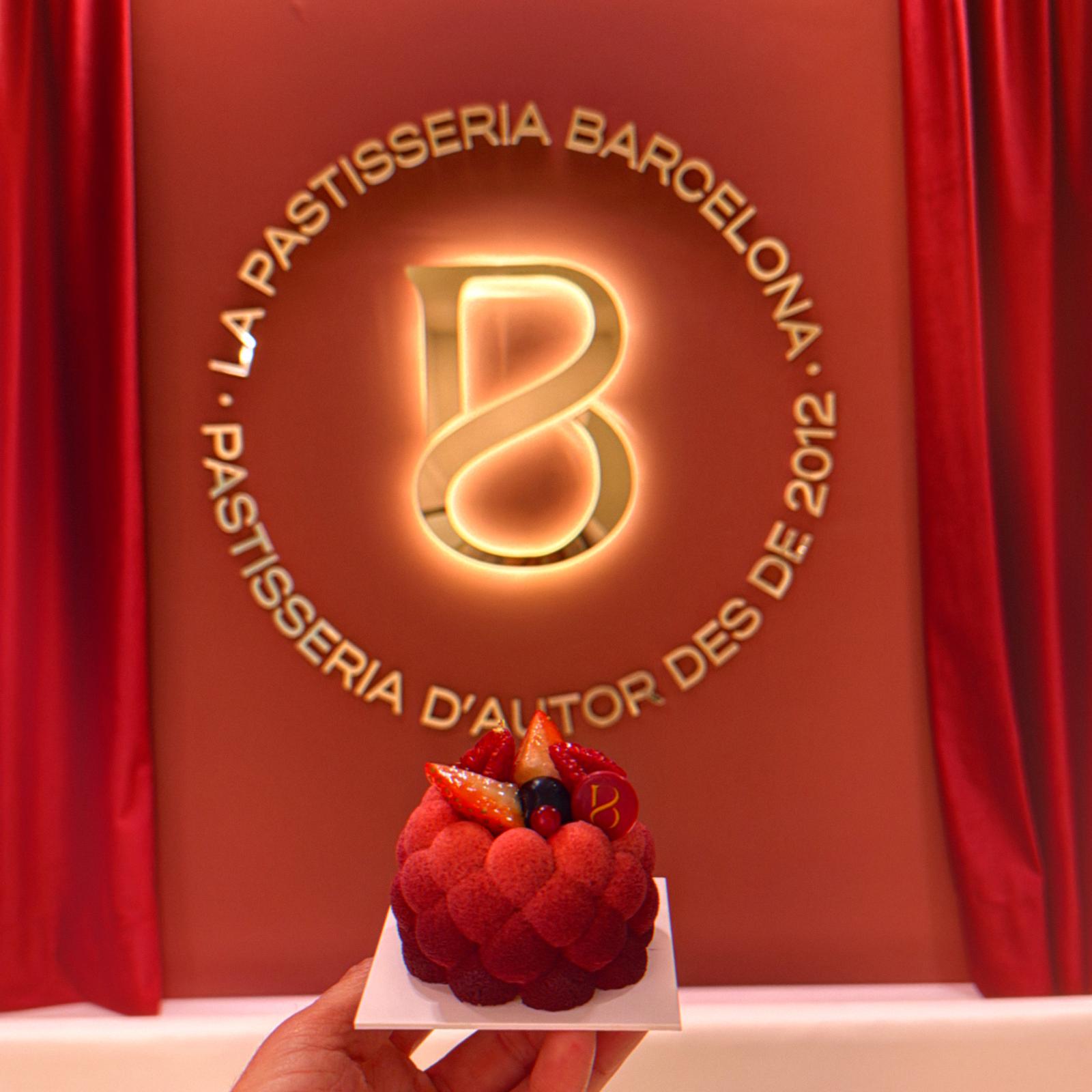 Mousse lleugera de passió, interior de compota de fruits vermells i base de pa de pessic tendre d’ametlla. Decorat amb fruits vermells.